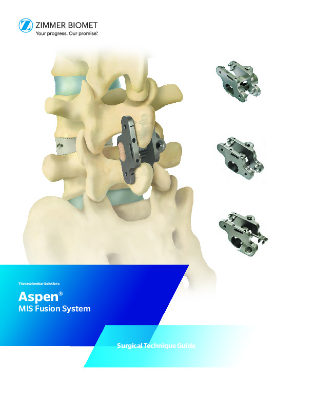 The Aspen MIS Fusion system by Highridge Medical was originally sold under Zimmer-Biomet. It features a minimally invasive approach for spinous process fixation.