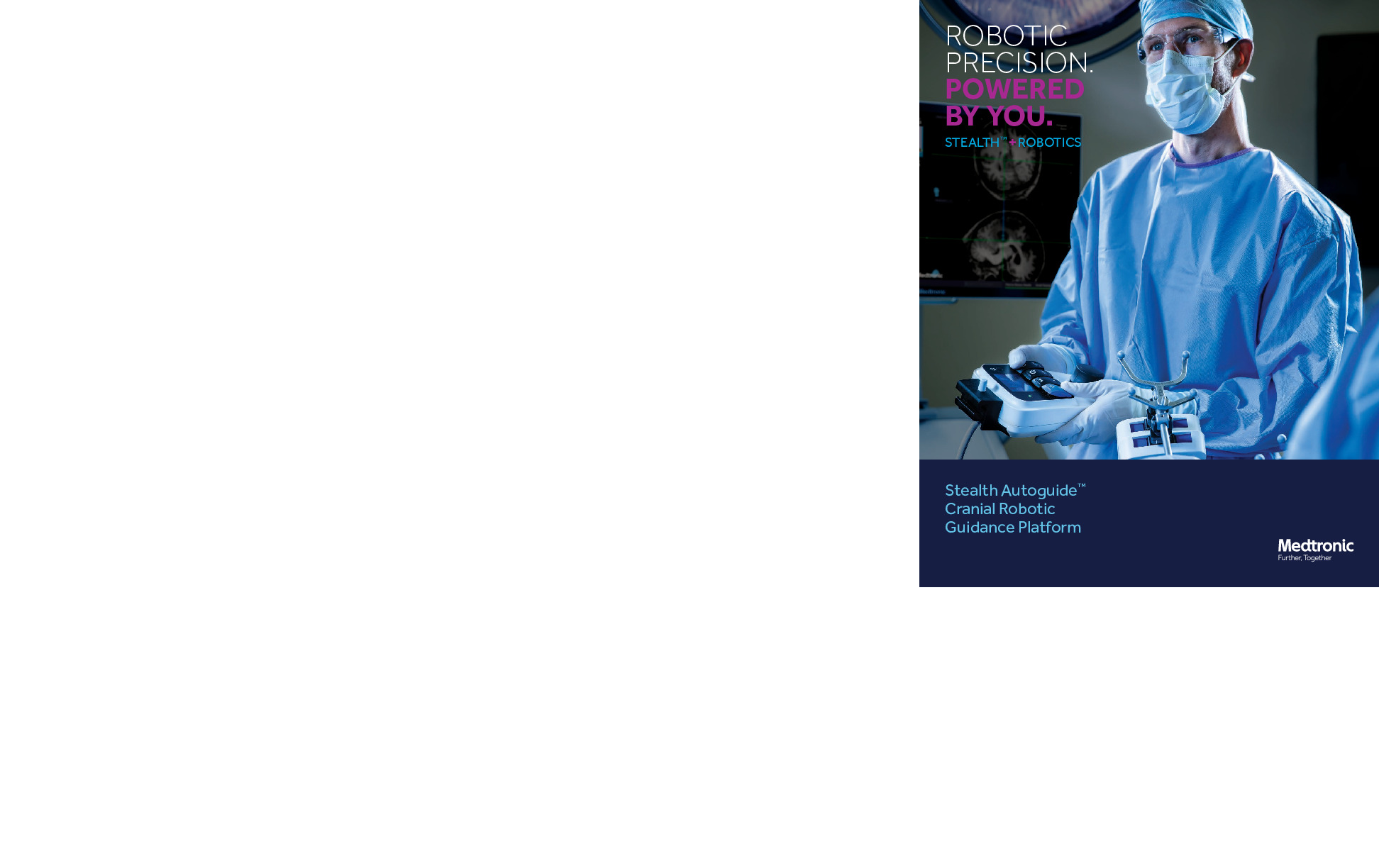 The AutoGuide Robotic Guidance system by Medtronic is a small footprint robotic system for cranial applications. It features a seamless integration with StealthStation and aligns your plans for biopsy, Visualase, and Depth electrodes.