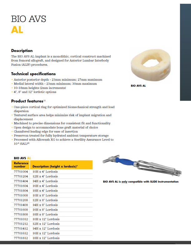 BIO AVS AL ALIF Cortical Ring Allograft Interbody Spacer