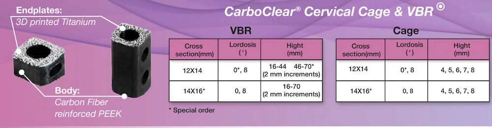 The CarboClear Anterior Cervical Spacer by CarboFix is a carbon fiber reinforced PEEK (CFR-PEEK) spacer for use in the ACDF procedure and features high strength material with porous 3D printed titanium endplates for increased bony adherence and ingrowth. Optimal for use when future imaging is required such as degenerative, oncology or trauma.