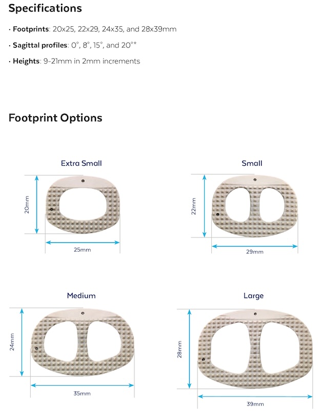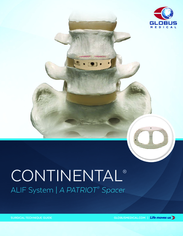The Continental is a PEEK and Titanium Coated PEEK (TPS) with biconvex endplates for optimal bony apposition to be used in the ALIF approach.