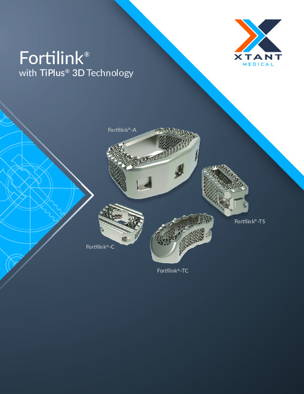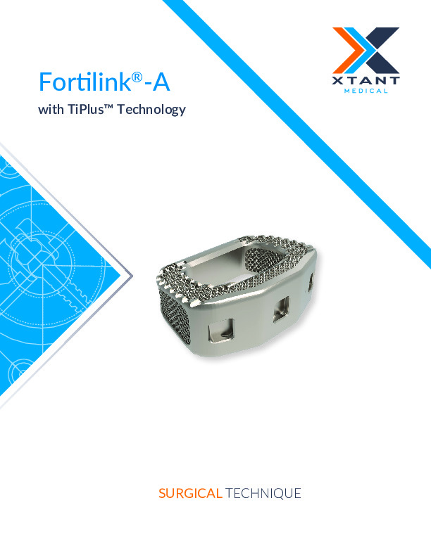 The Fortilink -A with TiPlus Technology is a 3D printed titanium spacer for use in the anterior lumbar interbody fusion procedure. It features a 3D printed mesh internal architecture to allow bony ingrowth and increase fusion rates.
