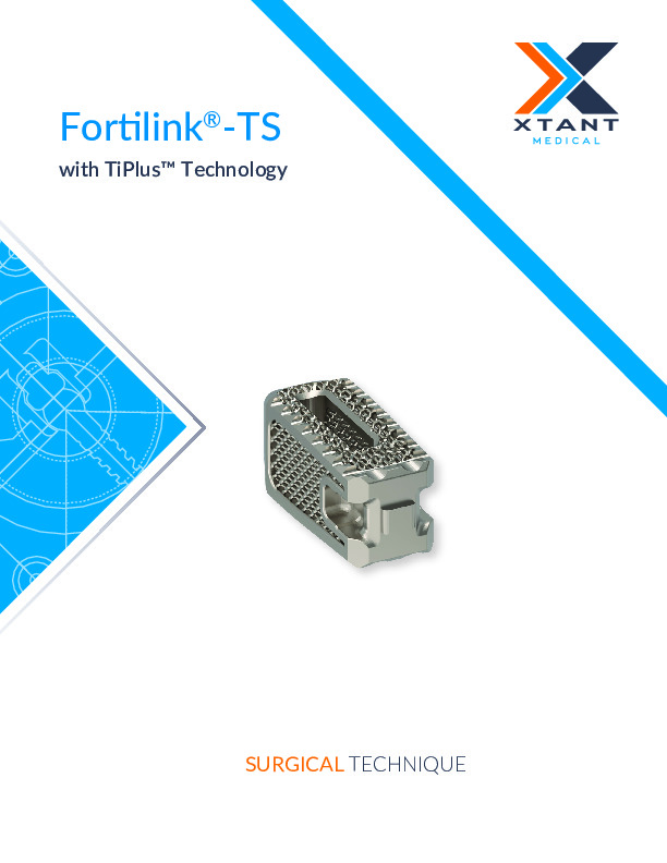 The Fortilink -TS with TiPlus by Xtant Medical is a 3D printed titanium spacer with 70% porosity for bony ingrowth.