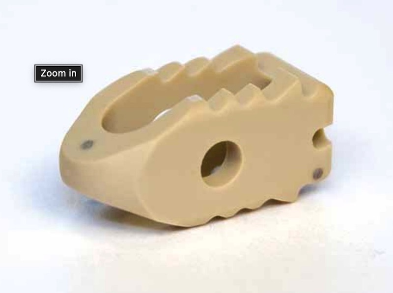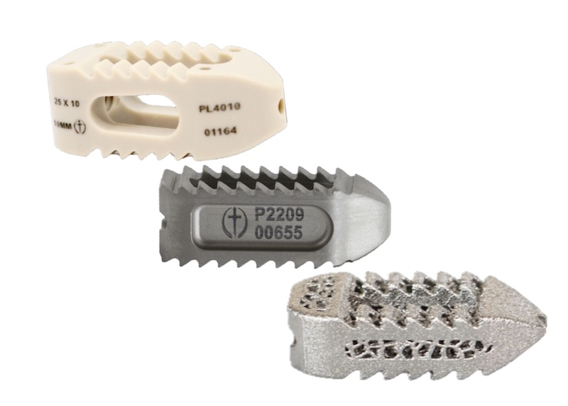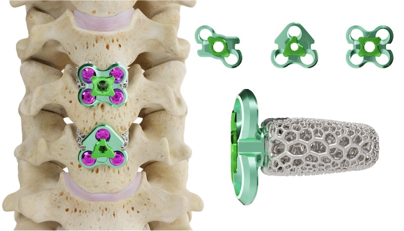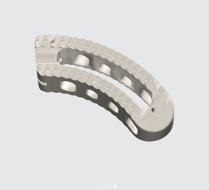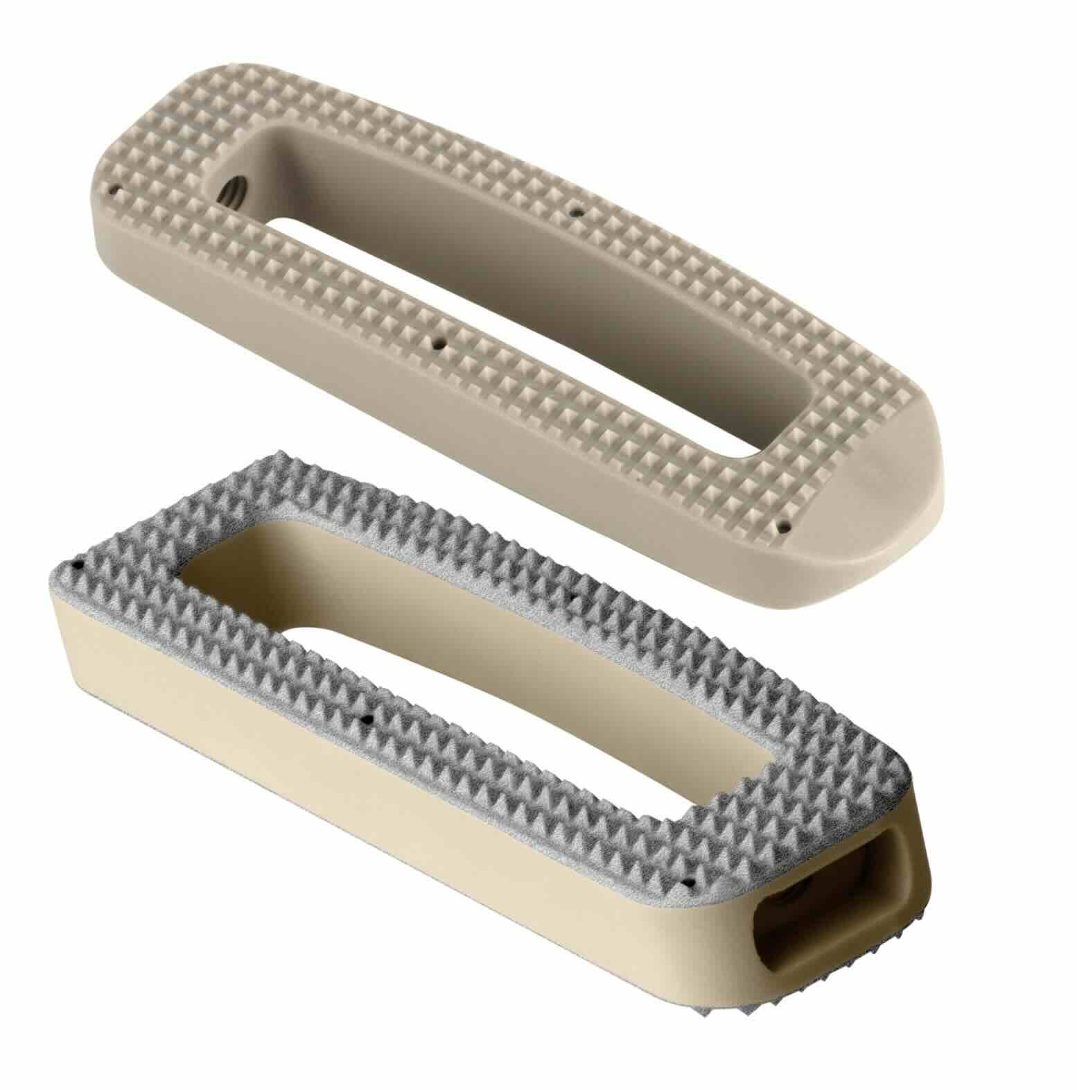 Kodiak C Cervical by Met One Technologies is an anterior cervical interbody cage made of 3D printed titanium. It has a large central cavity for allograft, lateral lattice windows for radiographic visualization, and textured superior/inferior surfaces to resist expulsion. Quick-release inserter prevents cage cross threading and allows for easier implant insertions. Multiple sizes and lordosis options.