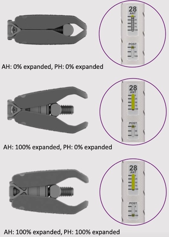The MOD-EX PL is an expandable interbody system designed for both PLIF and TLIF techniques, with customizable lordosis via independent expansion of the anterior and posterior aspects of the implant.