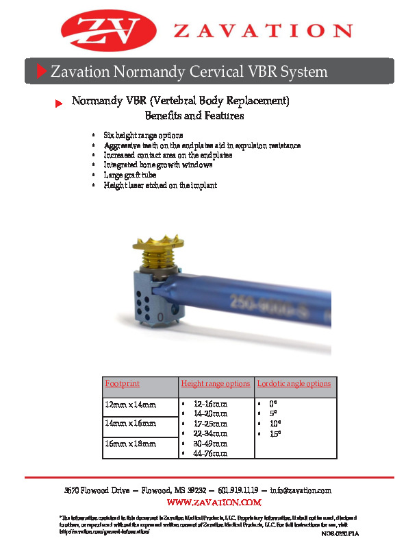 MANUFACTURER INFO:Normandy Cervical VBR