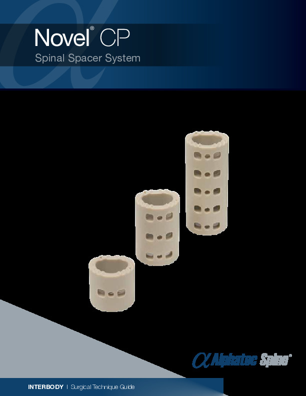 The Novel CP is a corpectomy spacer made of PEEK and indicated for use in the cervical, thoracic and lumbar corpectomy surgeries. Intended for use with supplemental plate fixation.