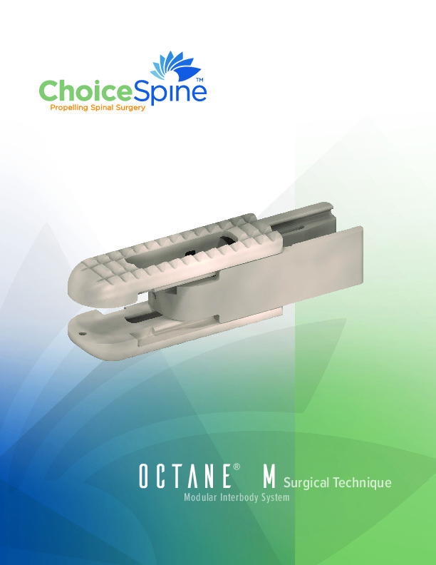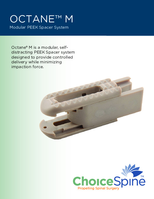 The OCTANE M by Choice Spine is a Modular PEEK TLIF interbody spacer system that utilizes a self-distracting delivery to reduce impaction forces and allows for controlled distraction of the endplates.