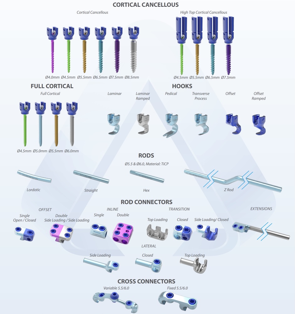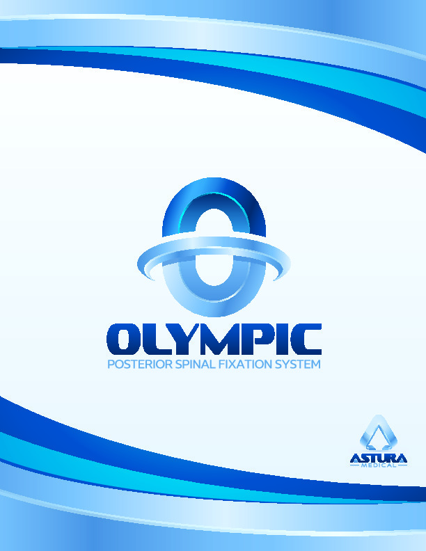 The Olympic Posterior Spinal Fixation System by Astura Medical is an open thoracolumbar pedicle screw based fixation system for use in the thoracic spine to pelvis. The system features a complete array of pedicle screws including standard polyaxial screws, uniplanar screws, cortical-cancellous screws, cortical screws, hooks, rod connectors, side connectors etc.