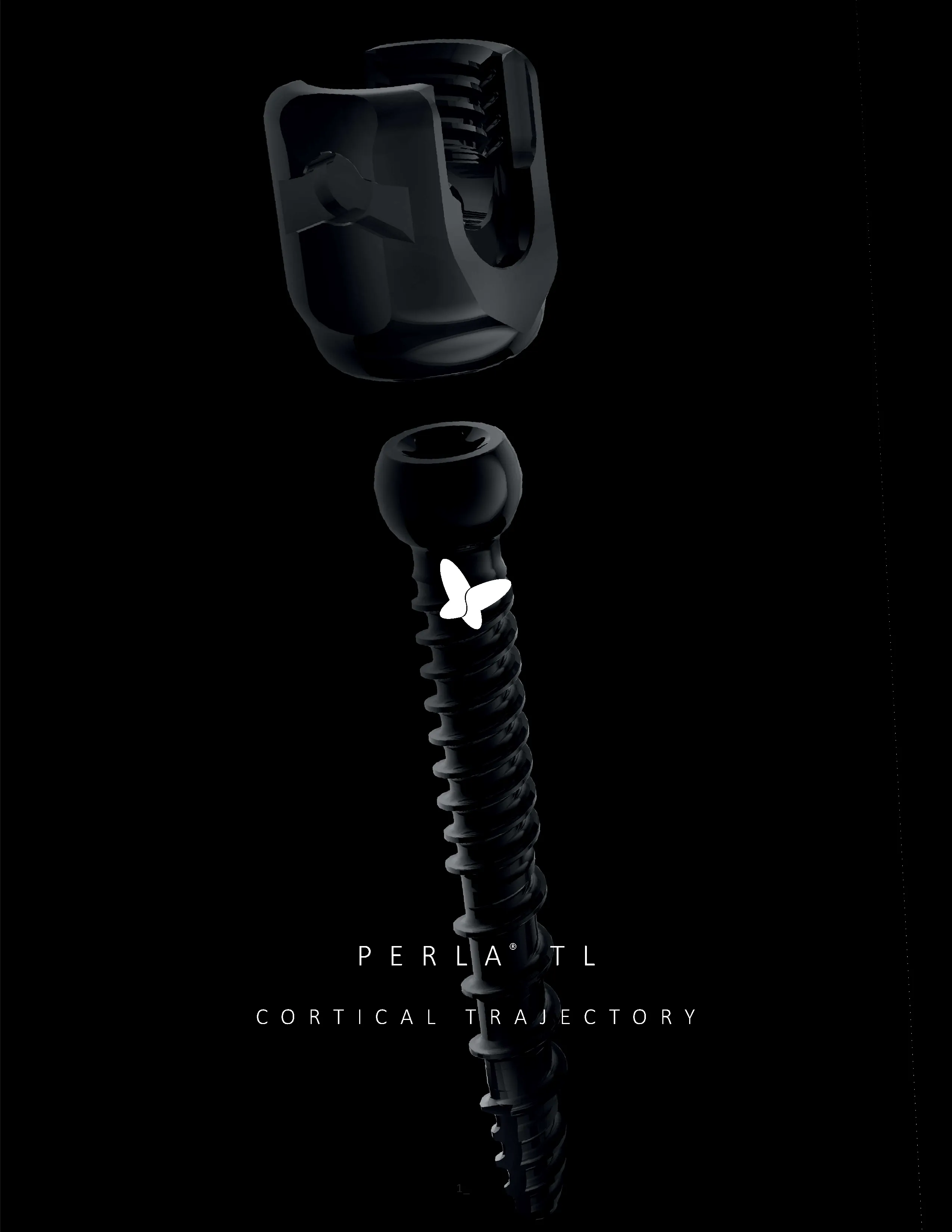 The Perla TL Cortical by Spineart is a modular thoracolumbar pedicle screw system that features a standard thread option and a corticocancellous thread option and features a standard head and an extended reduction head.