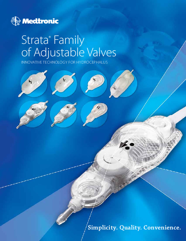 The PS Medical Strata II Valve by Medtronic is a non-locking non-MRI compatible adjustable shunt valves used in the treatment of hydrocephalus. The Strata II system comes with a distal antisiphon Delta Chamber. The Strata adjustable valve is also available without the Delta chamber, known as the Strata NSC (No Siphon Guard).