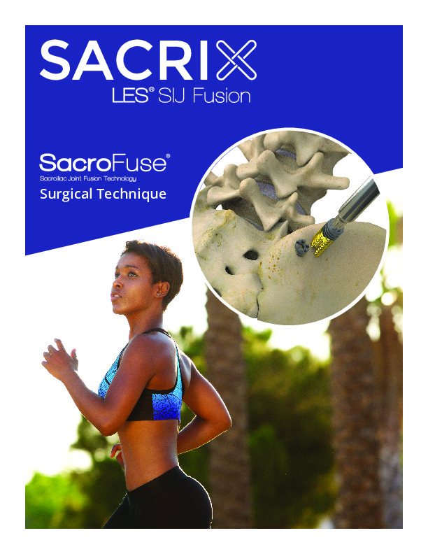 The SacroFuse by SACRIX is a subsidiary of NANASX (A venture of KIC Ventures) that provides fixation of the sacroiliac joint via a posterior-oblique approach. The SacroFuse Screw features surface treated tip and tail for increased bony on-growth. The screw features a cortico-cancellous thread with large central graft windows and fluted cutting holes for self harvesting of bone.