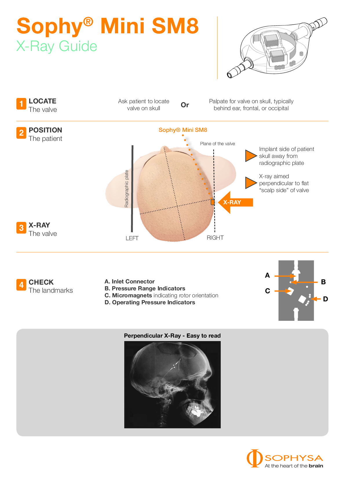 The Sophy Mini Hydrocephalus Shunt Valve by Sophysa is an adjustable valve with 8 pressure settings options. The Sophy Mini comes in 4 pressure rnage options to suit individual patient needs. The standard valve is the SM8 model but offers a low pressure and 2 high pressure range models. The valve is not MRI compatible and requires checking and reprogramming after MRI.
