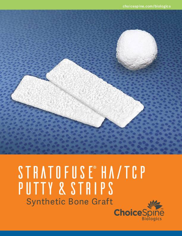 STRATOFUSE HA/TCP Putty and Strips are synthetic bone graft substitute composed of Beta-Tricalcium phosphate and granulated fibrillar collagen Type I along with HA (Hydroxyapatite). Composition of 60% HA and 40% Tri-calcium phosphate.