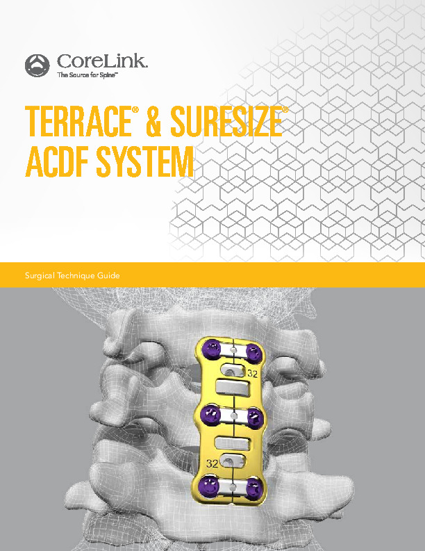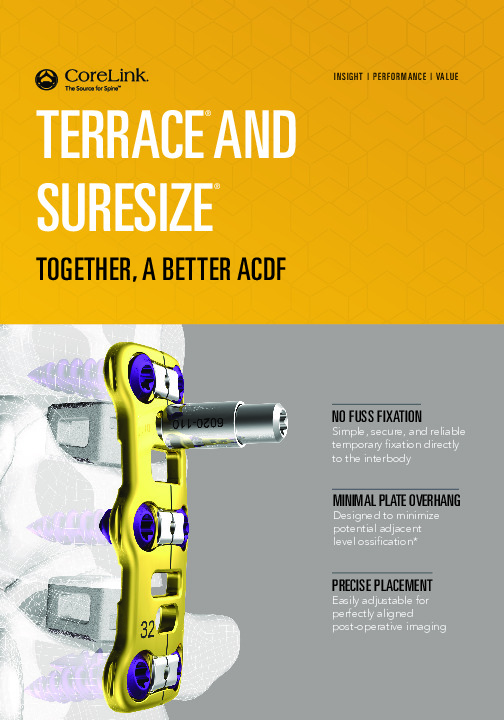 The SureSize ACDF spacer by Zavation is a spacer available in 3D printed titanium or PEEK. Made for use with the Terrace Anterior cervical plate for optimal sizing.