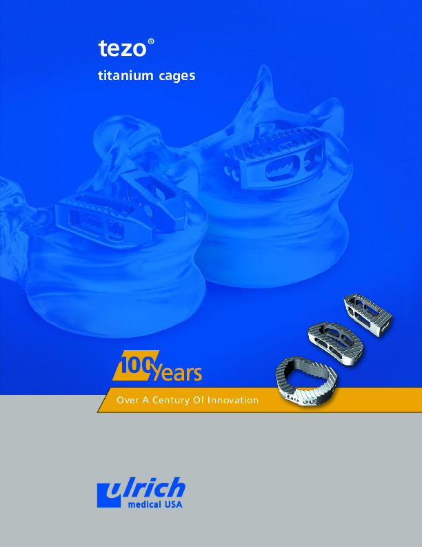 The tezo-P 3D printed porous titanium cages by Ulrich Medical USA are designed for lumbosacral interbody fusion (L2-S1), and come in three cage types: tezo-T, tezo-P, and tezo-A which are created specifically for TLIF, PLIF, and ALIF approaches. The PLIF Spacer comes as a straight cage and can be used singly as an oblique spacer or bilaterally.
