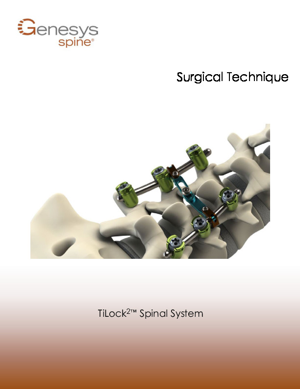 The TiLock2 Thoracolumbar Pedicle Screw Fixation System by Genesys Spine is a complete open and MIS fixation system incorporating both solid and cannulated dual-lead single pitch thread screws for use in both open and MIS percutaneous procedures. It utilizes a 5.5mm rod system and is available with a full complement of rod connectors, side connectors, offsets, hooks and cross-links.