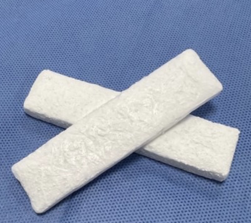 Tornado bioactive bone graft matrix by Spine Wave combines carbonate apatite inorganic bone mineral and 45S5 bioactive glass into a 3D matrix of type 1 collagen, which is then processed into strips and moldable pucks for bone grafting procedures. This resorbable trio is osteoconductive, osteoinductive, and osteogenic, particularly when used with autogenous bone marrow. It can be molded or used in its original shape, and is highly absorbent, flexible, moldable, and resists migration.